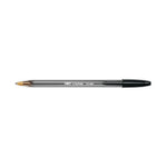 Bic Cristal Ball Pen. Lightweight clear hexagonal barrel provides comfortable and controlled writing and the durable tungsten carbide ball ensures consistent skip and blob free writing. Broad point. Black.