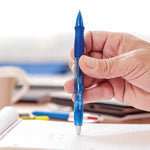 Smooth flowing Bic Gel Ink Pen. Features contoured rubber grip and combines the popularity of a retractable with Bic gel technology. Translucent barrel with matching grip and ink colour. Visible ink level. Medium point 0.7mm. Black.