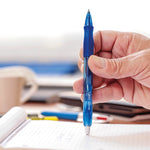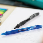 Smooth flowing Bic Gel Ink Pen. Features contoured rubber grip and combines the popularity of a retractable with Bic gel technology. Translucent barrel with matching grip and ink colour. Visible ink supply. Medium point 0.7mm. Blue.
