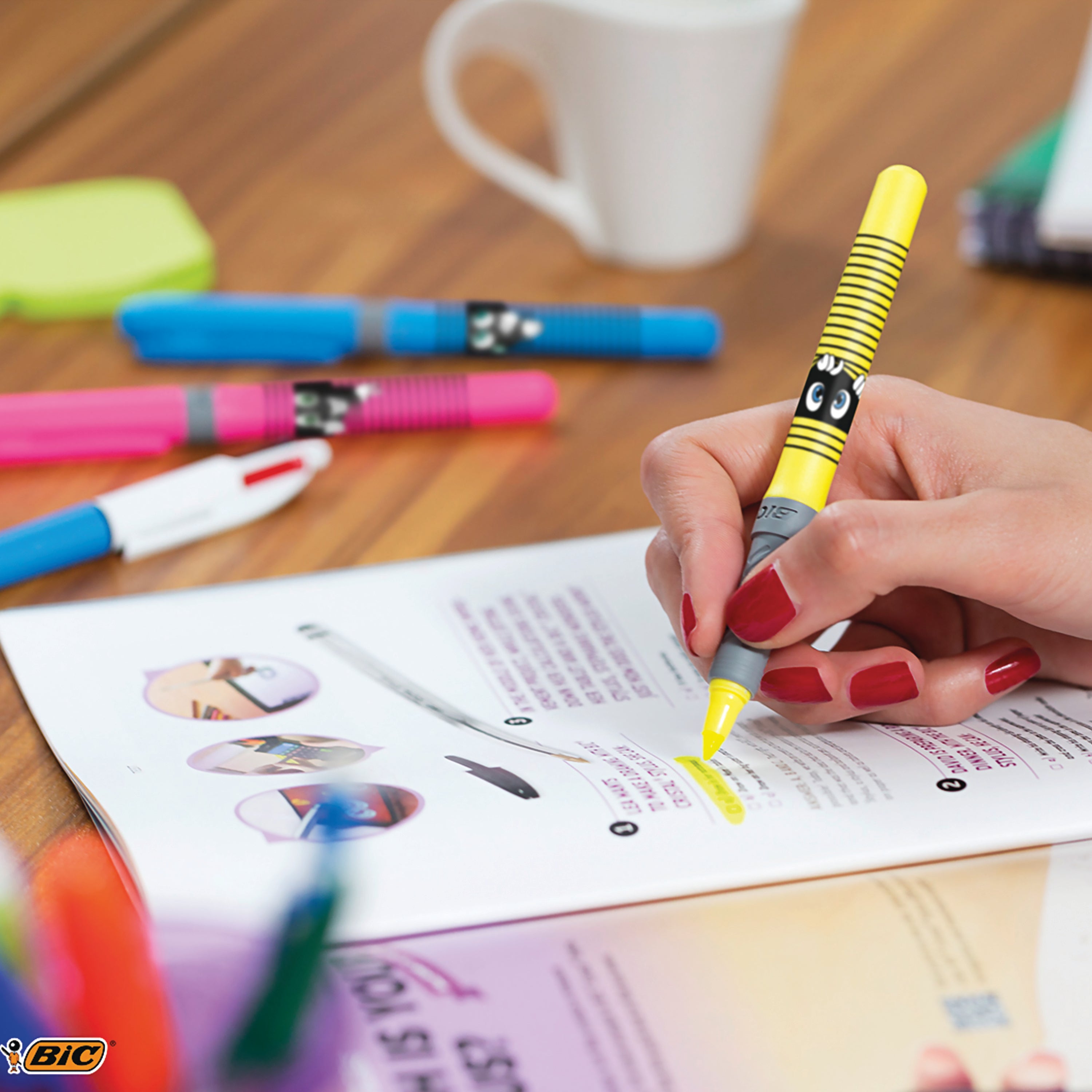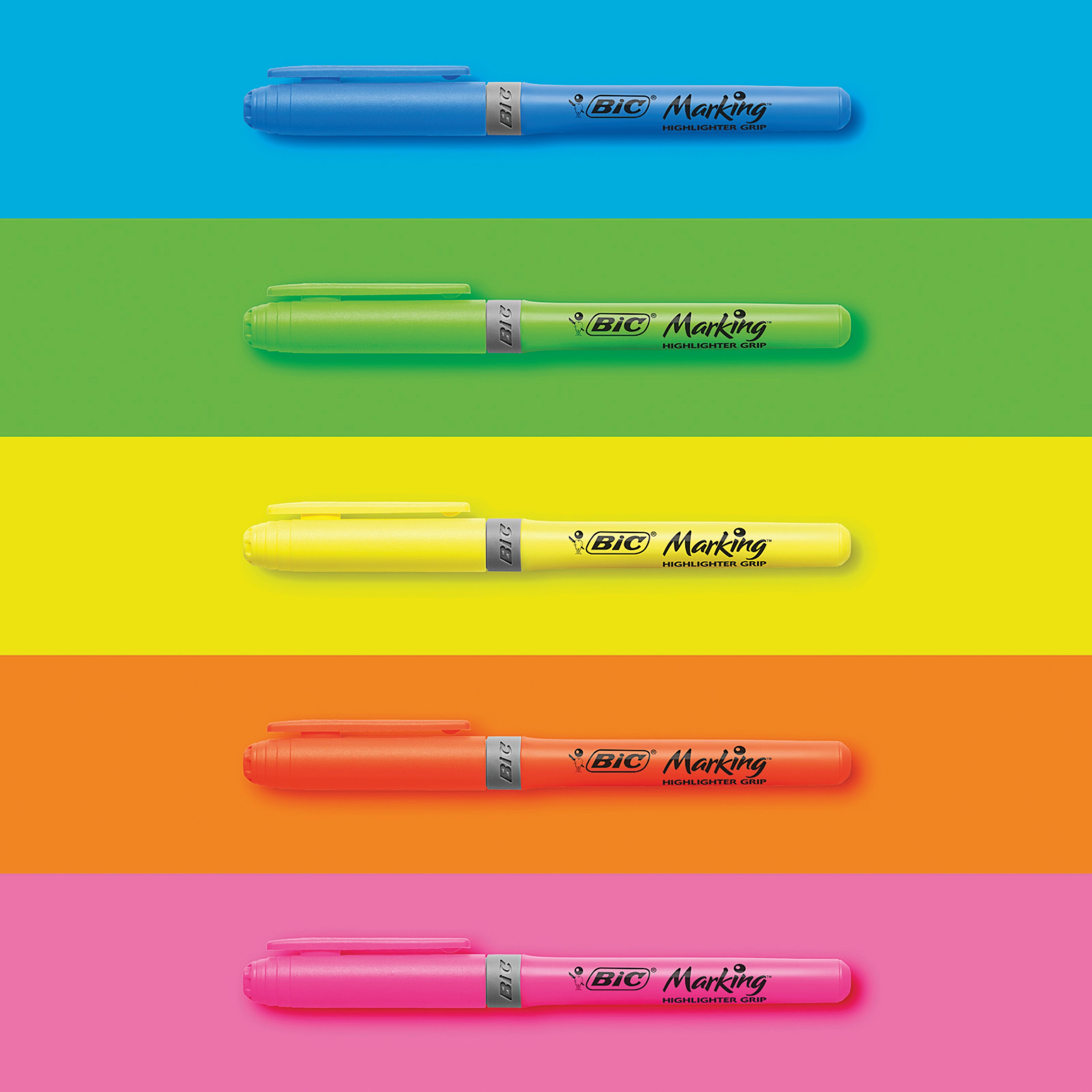 Bic Highlighter Grip Pastel Assorted (Pack of 12) 992562. Assorted standard and pastel colours for variety. Grip for comfortable handling. Secure cap design with 8 hour cap off time. Chisel tip for 1.6 to 3.3mm line width.