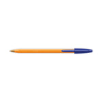 Bic Cristal Orange Ball Pen. Lightweight Orange hexagonal barrel provides comfortable and controlled writing and the durable tungsten carbide ball ensures consistent skip and blob free writing. Fine Point. Blue.