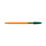 These Bic Orange Original Fine Ballpoint Pens feature a durable tungsten carbide ball mechanism and smooth oil-based ink for reliable, everyday use. The fine 0.8mm tip produces a thin 0.35mm line for elegant handwriting and detailed sketching. The bright orange barrel includes a green cap and end plug that matches the ink for easy identification. This pack contains 20 green pens.