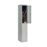 Bisley Lockers are a functional, yet stylish solution to personal storage in work or public spaces. This 2 Door locker comes with a hook for added convenience. The compartments have ventilation for air circulation and cam locks to help keep contents safe and secure. A label holder on each Door makes it quick and simple to organise these lockers or to assign them to specific people. This locker measures 305x305x1802mm and comes in Goose Grey. Contents not included.