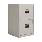 Bisley 2 Drawer Home Filing Cabinet A4 413x400x672mm Goose Grey PFA2-87. With easy glide runners. Fully lockable to protect important information. Drawers open to 80 percent extension. Label holders. Capacity Weight: 15kg Per Drawer. Non-returnable.