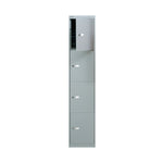 Bisley 4 Door Locker 305x305x1802mm Goose Grey CLK124 GOOSE. Ventilated compartment. Label holder on Door. 4 compartments, both lockable. Each lock is provided with 2 keys. Capacity Weight: 12kg Per Shelf. Dimensions: W305xD305xH1802mm. Non-returnable.