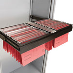 Bisley Rollout Suspension Filing Frame 840x420x85mm Black ROSFF-45. For Bisley cupboards and Tambour Unit units. Use with lateral files or printout binders. High capacity side-on files. Anti-tilt facility. Capacity Weight: 33kg Per Frame. Non-returnable.