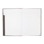 Black n' Red Manuscript Book. Fully casebound notebook with bound writing pages sewn into the spine. Size A5 210x148mm. 192 pages. Ruled Feint and Indexed. Pack 5.