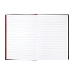 This stylish, professional Black n' Red A5 notebook contains 192 pages of high quality 90gsm Optik paper, which is designed for minimum ink bleed through and is ruled for neat notes. The casebound notebook features sturdy hardback covers and sewn pages for long lasting use. The A5 notebook also comes with a ribbon page marker for quick and easy referencing. This pack contains 5 A5 notebooks.