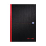 This stylish, professional Black n' Red A4 notebook contains 192 pages of high quality 90gsm Optik paper, which is designed for minimum ink bleed through and is narrow ruled for neat notes. The casebound notebook features sturdy hardback covers and sewn pages for long lasting use. The A4 notebook also comes with a ribbon page marker for quick and easy referencing. This pack contains 5 A4 notebooks.