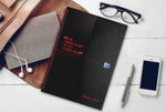 Black n' Red Wire Bound Notebook. Hardback laminated black covers with red wire binding. Size A4. 140 pages. 5mm Quadrille Ruled. Pack 5.