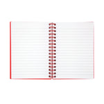 Black n' Red polypropylene Elasticated Notebook. Wirobound notebook with durable polypropylene cover and colour co-ordinated elastic closure. 140-pages. Ruled and Perforated. A6. Pk 5.