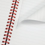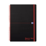 Recycled Black n' Red polypropylene Elasticated Notebook. Wirebound notebook with durable polypropylene cover and colour co-ordinated elastic closure - perfect for note taking scribbling or formal written work. 140 pages. Ruled. A4.
