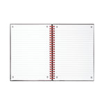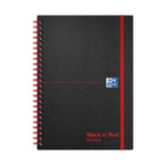 This professional Black n' Red A5 notebook contains 140 pages of quality, recycled 90gsm Optik paper, which is designed for minimum ink bleed through and is ruled for neat notes. The pages are also perforated for easy removal. The notebook is wirebound, allowing it to lie flat, and features durable polypropylene covers and an elasticated closure to help keep contents secure. This pack contains 5 A5 notebooks.