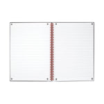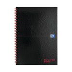 Recycled Black n' Red Notebook A4 Ruled Feint L66518 with hard backed laminated Black covers and Red wire binding so books lie flat when open. A4 297x210mm 140 pages.