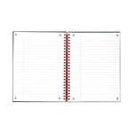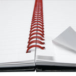 This professional Black n' Red A5+ notebook contains 140 pages of quality 90gsm Optik paper, which is designed for minimum ink bleed through. The pages are Margin ruled for neat note-taking and perforated for easy removal. The wire binding allows the notebook to lie flat for ease of use and it also features matte laminated hardback covers. This pack contains 5 A5+ notebooks.