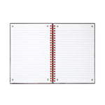 Hardback laminated black covers and red wire binding so notebook can lie flat when open. A5 210x148mm. 140 pages. Ruled feint and perforated. Pack 5.
