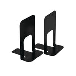 Ideal for supporting large and heavy publications such as binders, magazines and cookbooks, these deluxe bookends provide a stylish addition to your household or office organisation. The heavy gauge steel and reinforced rib design provides maximum strength and stability, with a scratch and chip resistant coating. The non-slip and non-marking base minimises impact on surfaces and removes the risk of sliding. This pack contains 2 black bookends measuring W150 x D210 x H230mm.