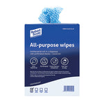 Antibacterial Cloths on a Roll Blue. Roll of 200 cloths in a handy dispenser box. Colour coordinated to avoid cross contamination. 220 x 370mm. 40gsm.