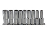 This Blue Spot socket set contains 9 useful 1/2 inch square drive sockets which are made from chrome vanadium steel for strength and durability and which have a deep reach for better access.