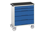 The Bott Verso Mobile Cabinet has a welded steel construction with a durable powder coat paint finish in RAL 7035 light grey and RAL 5010 gentian blue. It is fitted with a push/pull handle and 125mm diameter castors, allowing easy transport throughout the workplace as and when required.