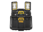 This DEWALT TOUGHSYSTEM™ 2.0 Combo lets you illuminate work areas and keep essential tools close-at-hand. Powered by 18V batteries, NOT SUPPLIED, this modular lighting solution features 2 pivoting LED heads providing up to 3 hours of runtime. Brighten dim spaces with up to 4,000 lumens (using both lights) of natural white light and 7 brightness levels. With ample storage space, an integrated folding handle, and durable design this TOUGHSYSTEM® compatible product delivers the versatility needed for demanding jobsites.