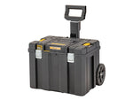 The DEWALT TSTAK™ 2.0 Mobile Storage Box has an ergonomic, telescopic handle and durable 177mm (7in) wheels for easy transportation of heavy tools. Designed to carry and transport T-STAK® modules, giving the option of connecting and customising multiple units depending on what is required for a jobsite.