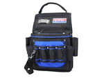 This Faithfull Electricians Tool Pouch is made from durable 2100 denier nylon. It has two pockets, 14 tool slots, a fabric tool loop and a measuring tape clip. Riveted at stress points to increase strength. The belt loop is compatible with all Faithfull belts.