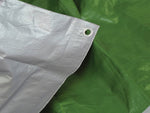The Faithfull Tarpaulin is a tough, re-usable waterproof cover. It has a laminated woven polyethylene construction and heat sealed, poly rope reinforced hem. Highly durable, tear, stretch and UV resistant, with rust resistant metal eyelets. The colour is reversible between silver and green.