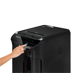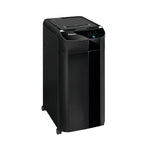 Fellowes Automax 350C Cross Square Cut Shredder 4964101. 350 sheet automatic and 12 sheet manual shredding capacities. Shreds documents into 4x38mm crosSq Cut particles. Shreds the 350 sheet capacity in approximately 8 minutes with a 45 minute duty cycle.