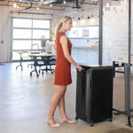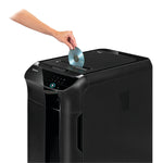 Fellowes Automax 550C Cross Square Cut Shredder 4963101. 550 sheet automatic and 14 sheet manual shredding capacities. Shreds documents into 4x38mm crosSq Cut particles. Shreds the 550 sheet capacity in approximately 13 minutes.