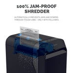 Fellowes Powershred LX220 Mini-Cut Shredder Black 5502601. This shredder offers unmatched productivity and a jam proof performance. The Intellibar technology prevents interruptions. It has a 20-sheet shredding capacity and 30-litre pull-out bin.