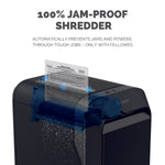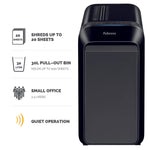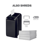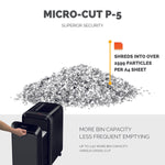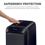 Fellowes LX221 Micro Cut Shredder Black 5050401. Shreds up to 15 sheets of paper into 2 x 12mm micro-cut particles. Security Level: P-5. Shreds nonstop for up to 25 minutes. Designed for use in office environments. Bin capacity: 22 litres. Colour: Black.