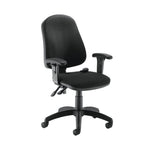 This First Calypso 2 Lever Chair with Lumbar Pump and Adjustable Arms is a sturdy posture chair. The best in ergonomic chairs, it is physio-approved and offers the benefits of a Permanent Contact Back (PCB) mechanism with an inflatable lumbar support and adjustable arms. The tough wearing upholstered curved foam back offers full contact and comfort for up to 8 hours for users up to 115 kg. It provides comfort without the hefty price tag.