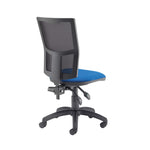 These chairs fuse the comfort of cushioned pads with the support quality of a high mesh back. The height and back tilt can be adjusted with ease, making the chair flexible to your needs. Even the arms (not included) can be raised or lowered to suit you, creating the ultimate in personal comfort. Supplied in Blue, this chair also features a wheeled base for mobility.