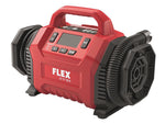 The Flex Power Tools CI 11 18.0 Inflator is suitable for high-pressure and large volumes, e.g., filling and emptying of air mattresses and other large-volume objects. Can be powered by a Flex 18V slide-type Li-ion battery (NOT supplied) or 12V vehicle voltage (via cigarette adaptor). Clear, large operating elements for fast setting of the desired functions. It also features pressure presetting with automatic switch-off when the desired pressure is reached.