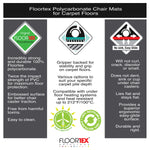Floortex Ultimat Polycarbonate Rectangular Chair Mat for Carpets up to 12mm 1500x1200x23mm 1115223ER. Gripper back. Polycarbonate will not crack, curl, discolour or smell. Lies flat, stays flat. Child and pet safe. Greenguard certified. 100% recyclable.