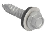 The screws have a rubber washer beneath the aluminium flange which expands under pressure and forms a permanent weather seal. They are zinc plated and have an 'Elementech' coating for superior corrosion resistance, which has been salt spray tested to 1,000 hours.