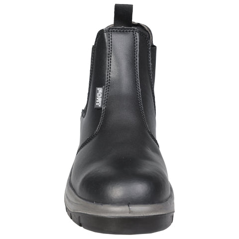 A pair of no-nonsense safety boots for reliable, day-long protection. This style of pull-on boot, with its neat leather upper, has long been popular with farmers and other rural trades. A steel toe cap and steel midsole do their vital protective work so you can crack on with the job you love.