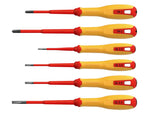 The Hultafors 6 Piece VDE Screwdriver Set. Developed for professional use together with craftsmen. With an extra narrow blade design for better access in confined spaces. Each screwdriver is tested and certified according to IEC 60900. For working on electrical installations up to 1,000 V.
