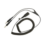 The Jabra PC cord has Quick Disconnect (QD) to dual 3.5mm jack connector. This coiled cord is typically used for PC sound card.