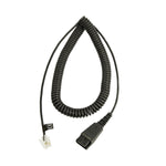 The Jabra 2 metres coiled bottom cord that has Quick Disconnect (QD) to Modular RJ9 connector. The coiled cord features 47K Ohm resistor for Nortel handsets.