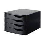 Jalema Desktop Set Black. Four drawer desk unit to accommodate A4 files and documents. Features cut out handles for easy access to drawer contents. Colour: Black.