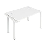 The Jemini Bench System Desking is ideal for offices where space is at a premium. Each bench desk has a tubular steel leg construction with an MFC finish floating top effect. The scalloped desktops allow for easy access to cables. Each extension bench desk measures 1400x800x730mm.