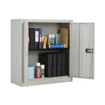 Keep your office or workspace tidy and organised with this Jemini two door stationery cupboard. It has been constructed to ensure it provides a sturdy and strong storage space and is made from hard wearing material for ultimate durability. The doors fit together perfectly and are lockable in two places, enabling you to secure your paper and pens when you are not there. Its stylish, textured finish makes it look professional and enables it to fit into any environment without looking out of place.