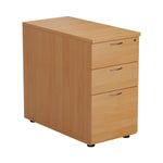 Suitable for use with standard desks, 600mm/800mm deep desking and radial desks, this 3 drawer desk high pedestal includes 2 box drawers and 1 foolscap size filing drawer. The box drawers will take A4 files. Measuring W404 x D800 x H730mm with a 25mm desktop the pedestal is finished in Beech.