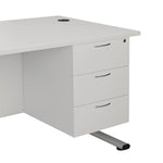 Finished in White, the Jemini fixed pedestal features 3 drawers which will take A4 files. Measuring W400 x D500 x H495mm with a 25mm desktop, this Jemini fixed pedestal is designed for use with single upright desks, making an ideal storage solution.