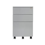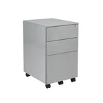 This entry level Jemini mobile steel pedestal features 2 stationery drawers and 1 filing drawer suitable for use with A4 suspension files. The tough steel carcass features an anti-tilt mechanism, allowing only 1 drawer open at a time. This pedestal measures W380xD470xH615mm and comes in a silver finish with an integrated handle design.