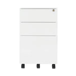 This entry level Jemini mobile steel pedestal features 2 stationery drawers and 1 filing drawer suitable for use with A4 suspension files. The tough steel carcass features an anti-tilt mechanism, allowing only 1 drawer open at a time. This pedestal measures W380xD470xH615mm and comes in white with an integrated handle design.