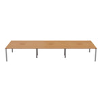 The Jemini Bench System Desking is ideal for offices where space is at a premium. Each bench desk has a tubular steel leg construction with an MFC finish floating top effect. The scalloped desktops allow for easy access to cables. Each bench desk measures 4200x1600x730mm.