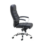 Offering comfort with a stylish and professional design, the Jemini Ares Executive Chair is upholstered in black polyurethane with a chrome base. It has a large padded seat and back for added comfort with a knee-tilt mechanism and five star castor base.
